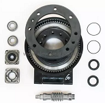 The slewing drive is a gearbox that can safely hold radial and axial loads, as well as transmit a torque for rotating. The rotation can be in a single axis, or in multiple axes together. Slewing ring drives are made by manufacturing gearing, bearings, seals, housing, motor and other auxiliary components and assembling them into a finished gearbox. The slewing drive uses precision kinematics to provide a large proportion of single stage gearing.