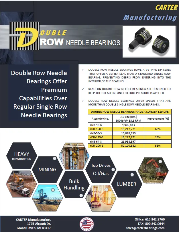 Yoke rollers are typically used in applications with heavier overall loads, where standard conditions exceed the capabilities of stud type cam followers. They do require clevis or shaft-mounted installation, which provides support on both sides of the cam follower and permits use of a high-strength pin.
