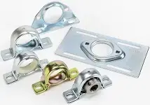 Stamped pillow blocks consist of a two-piece separable stamped steel housing with spherical bearing seat. This allows the spherical OD bearing initial self-alignment in all directions.